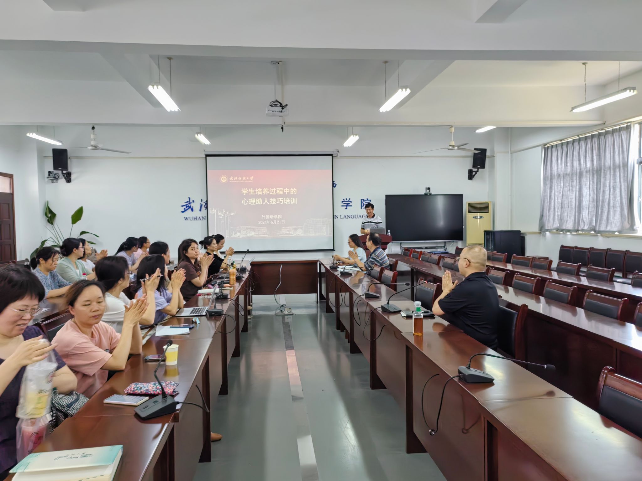 为进一步提高学院班主任、本科生导师心理健康教育水平,更好地关爱守护每一位学生。6月21日下午,外国语学院在崇文楼303会议室开展学生培养过程中的心理助人技巧培训会。学院相关负责人,全体班主任、本科生导师、硕士生导师、辅导员参加此次会议。