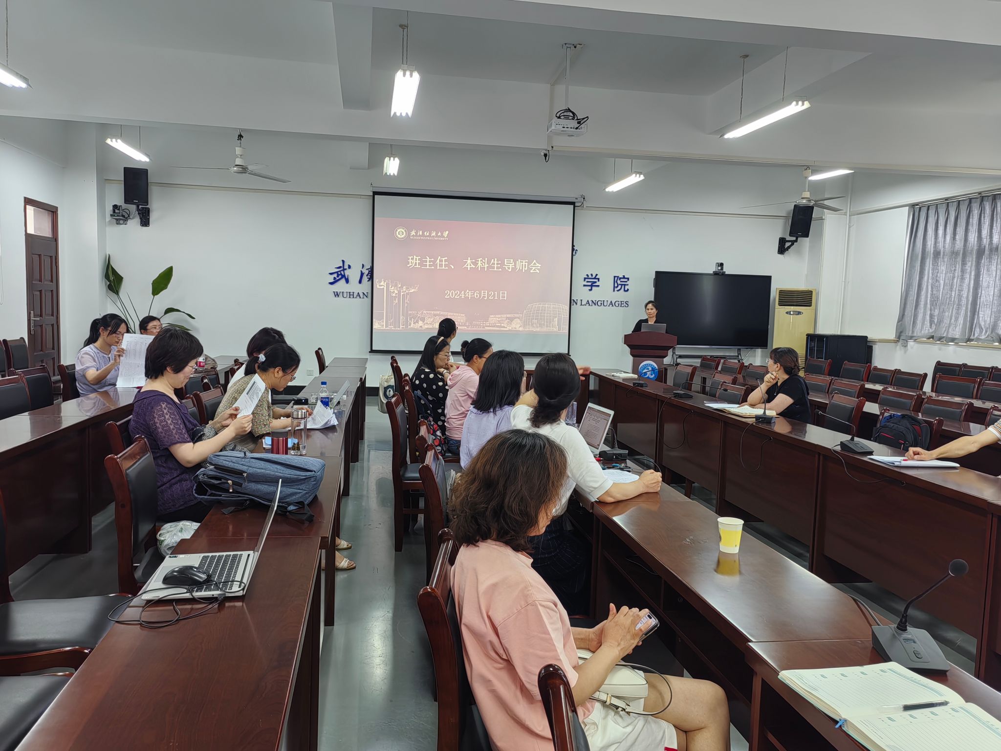 为进一步提升本科生的教学质量与培养效果,加强导师与学生之间的沟通与联系,6月21日,外国语学院在崇文楼303会议室召开班主任、本科生导师会议,学院副院长刘方荣、党委副书记彭阳慈航以及21级、22级班主任、本科生导师和辅导员参加此次会议。会议由院长谭燕保教授主持。