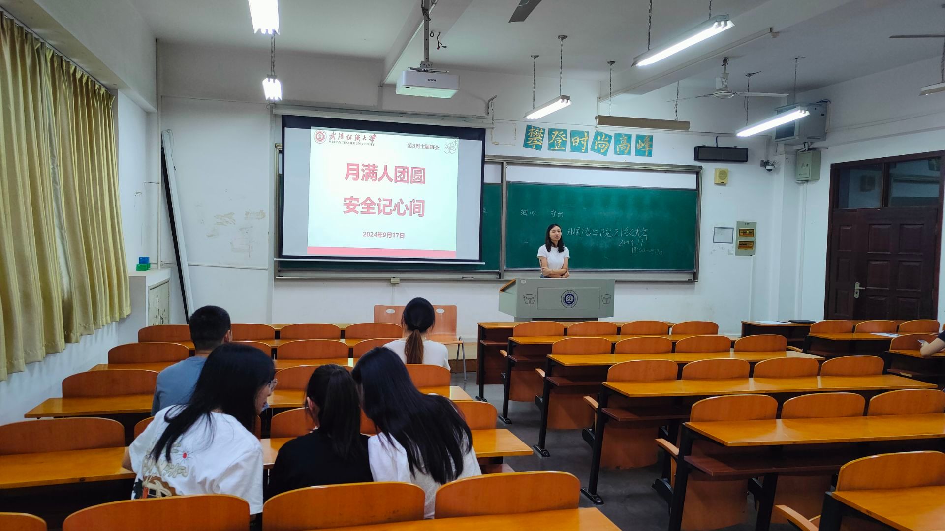 9月17日晚,外国语学院全体辅导员、班主任通过线下方式,深入各班级组织召开晚点名,开展“月满人团圆,安全记心间”主题班会。学院全体本科生、研究生参加班会。此次班会旨在学习教育家精神,强调杜绝学术不端行为,并提醒学生注意校内消防安全。