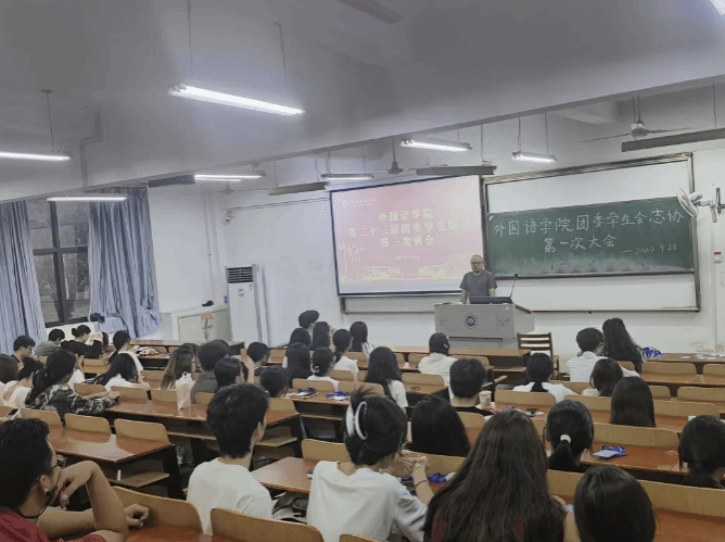 9月28日晚,外国语学院于崇志楼120教室组织开展学生组织培训交流会,学院各学生组织负责人和学生干部参加培训交流。