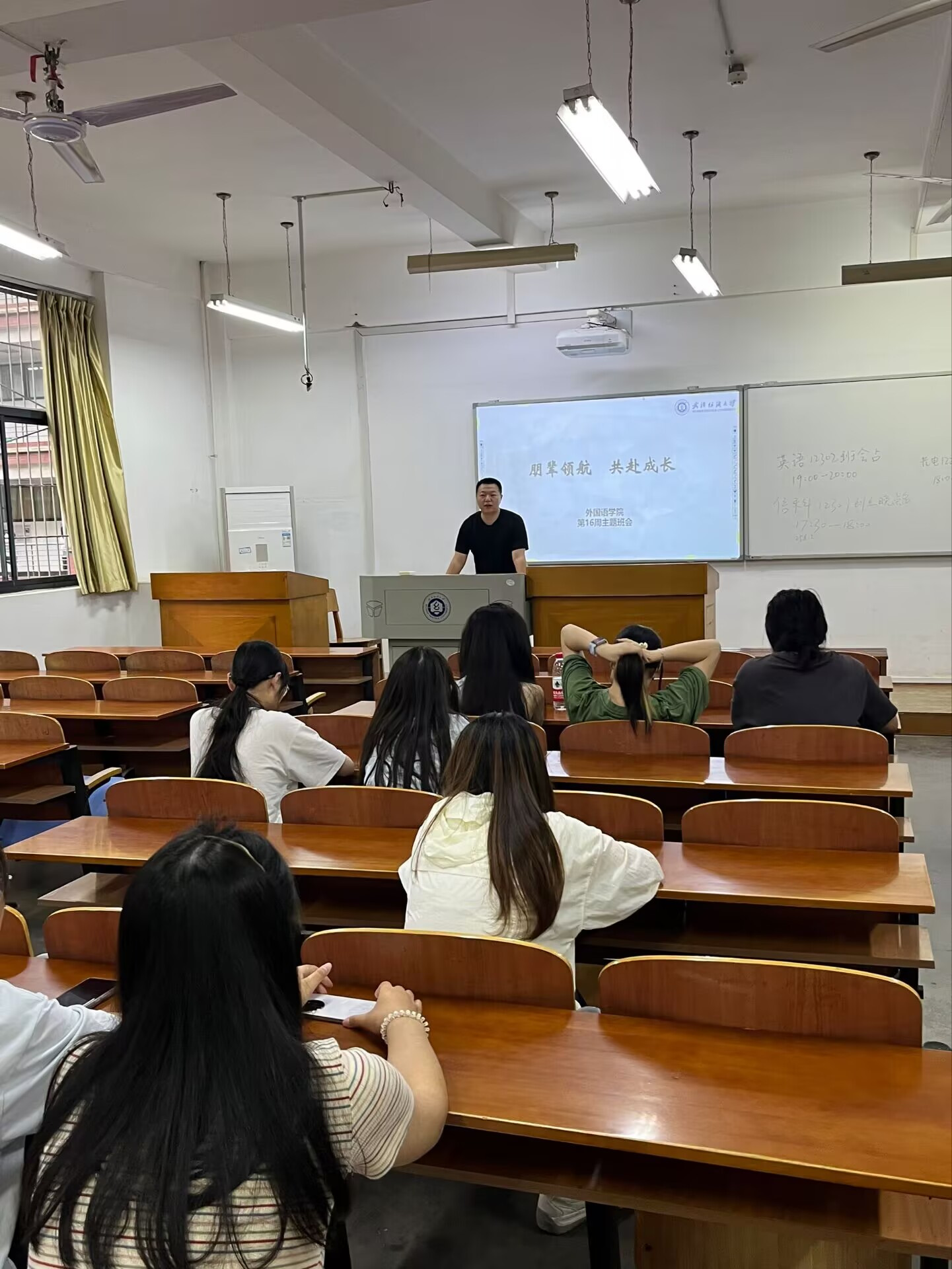 6月2日晚,外国语学院全体辅导员、班主任通过线下方式,深入各班级组织召开晚点名,开展“朋辈领航,共赴成长”主题班会。学院全体本科生、研究生参加班会。此次班会旨在充分发挥朋辈榜样的引领作用,引导学生积极备考、诚信应考。