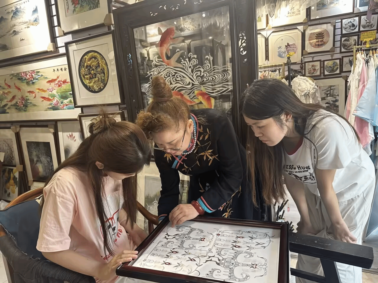 “汉绣的传承,不仅要守住老手艺,更要让年轻人愿意学、喜欢学。”沈老师在接受采访时表示,昙华林汉绣艺社一直坚持通过体验活动等形式,让汉绣走出“博物馆”,走进大众生活。同时,她表示鼓励年轻人结合网络和AI技术进行设计与创作,利用电商平台将汉绣传播到海外。“外国人对中国传统元素的理解程度不一,不少人只觉得好看,却对内涵理解较浅。”她建议通过语言交流和图案寓意介绍,提升外国人对汉绣文化的认知。