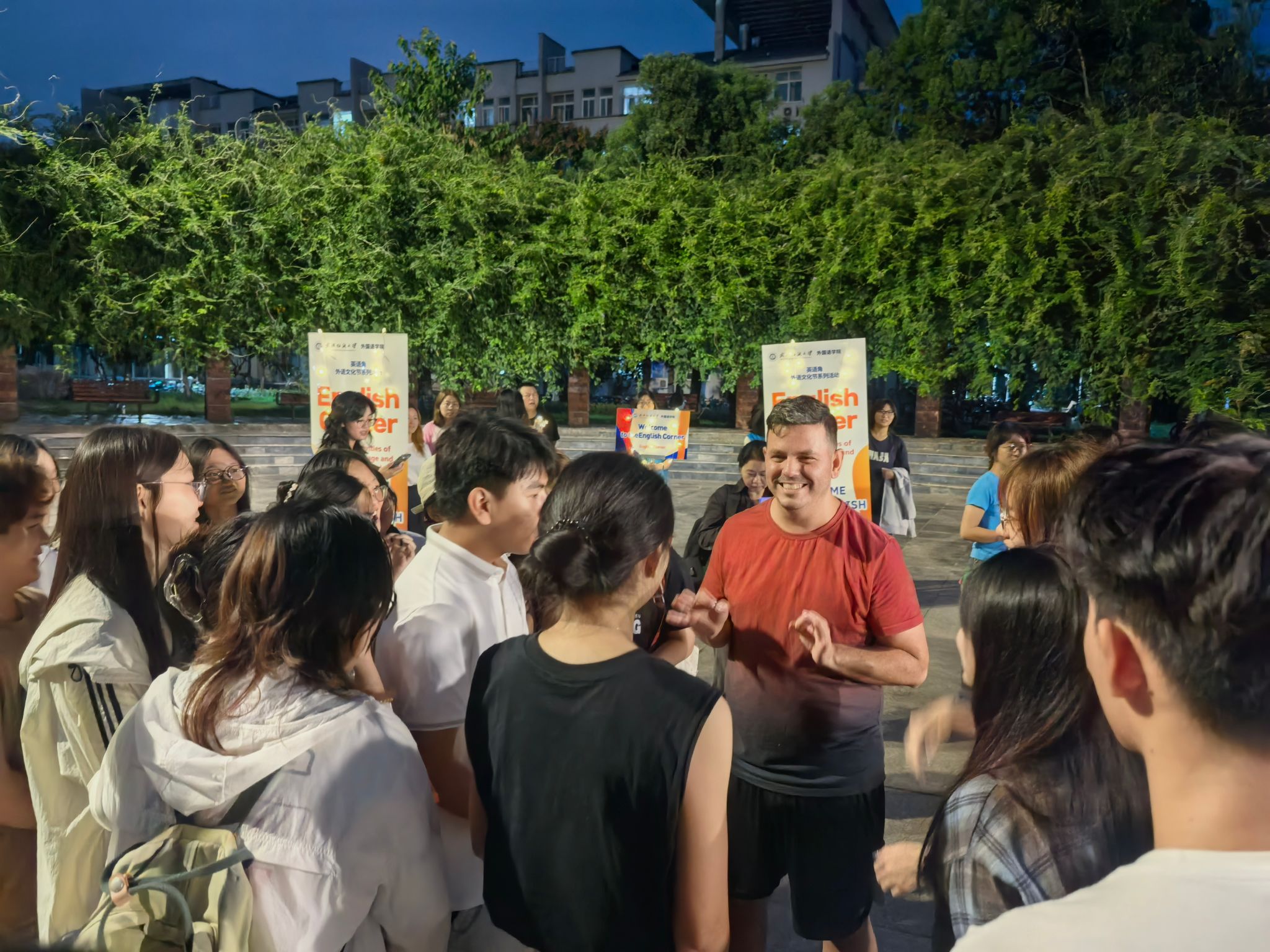 为营造浓厚的外语学习氛围,拓宽学生国际视野,作为外语文化节的重要系列活动之一,9月18日晚,外国语学院在阳光校区至善广场举办英语角活动。本次活动吸引了来自全校8个学院的近300名同学踊跃参与,现场气氛热烈,交流活跃。