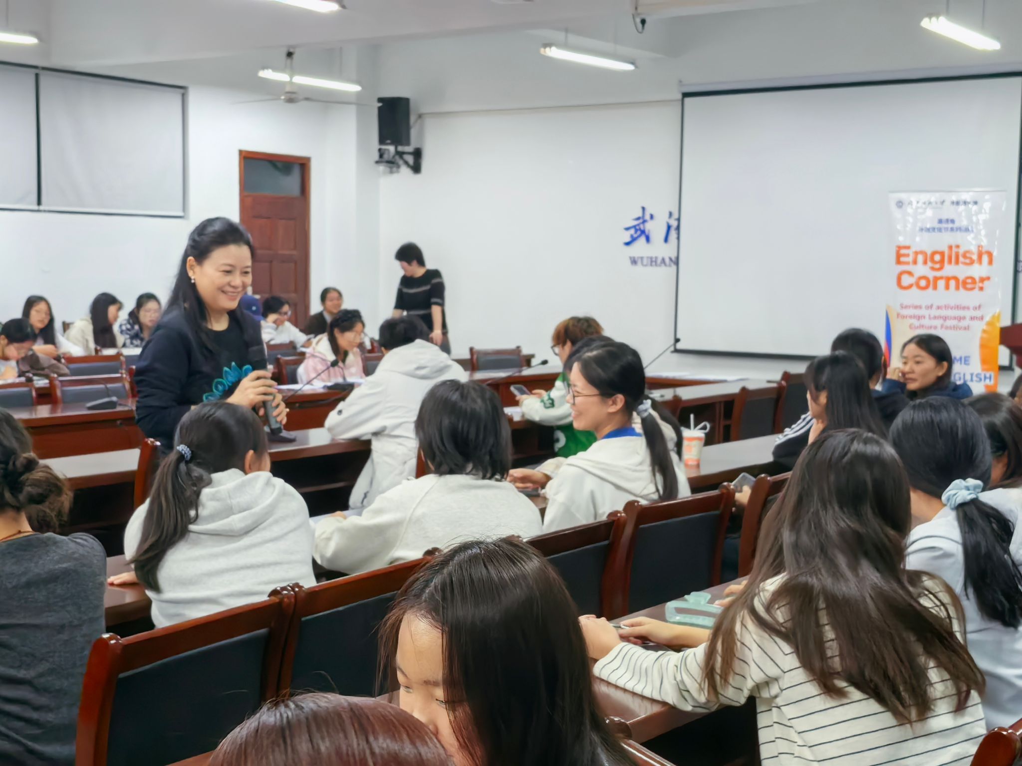 10月16日晚,外国语学院于阳光校区成功举办了一场别开生面的迎新主题校园英语角活动。本次活动特别面向2025级本科及研究生新生,同时吸引了来自全校各学院的英语爱好者参与,共计约200名师生齐聚一堂,在轻松愉快的全英文氛围中开启了新学年的语言实践与文化互动之旅。学院副院长罗绮伦、党委副书记彭阳慈航与多位专业教师、外籍教师共同参与,与学生们进行了深入交流。