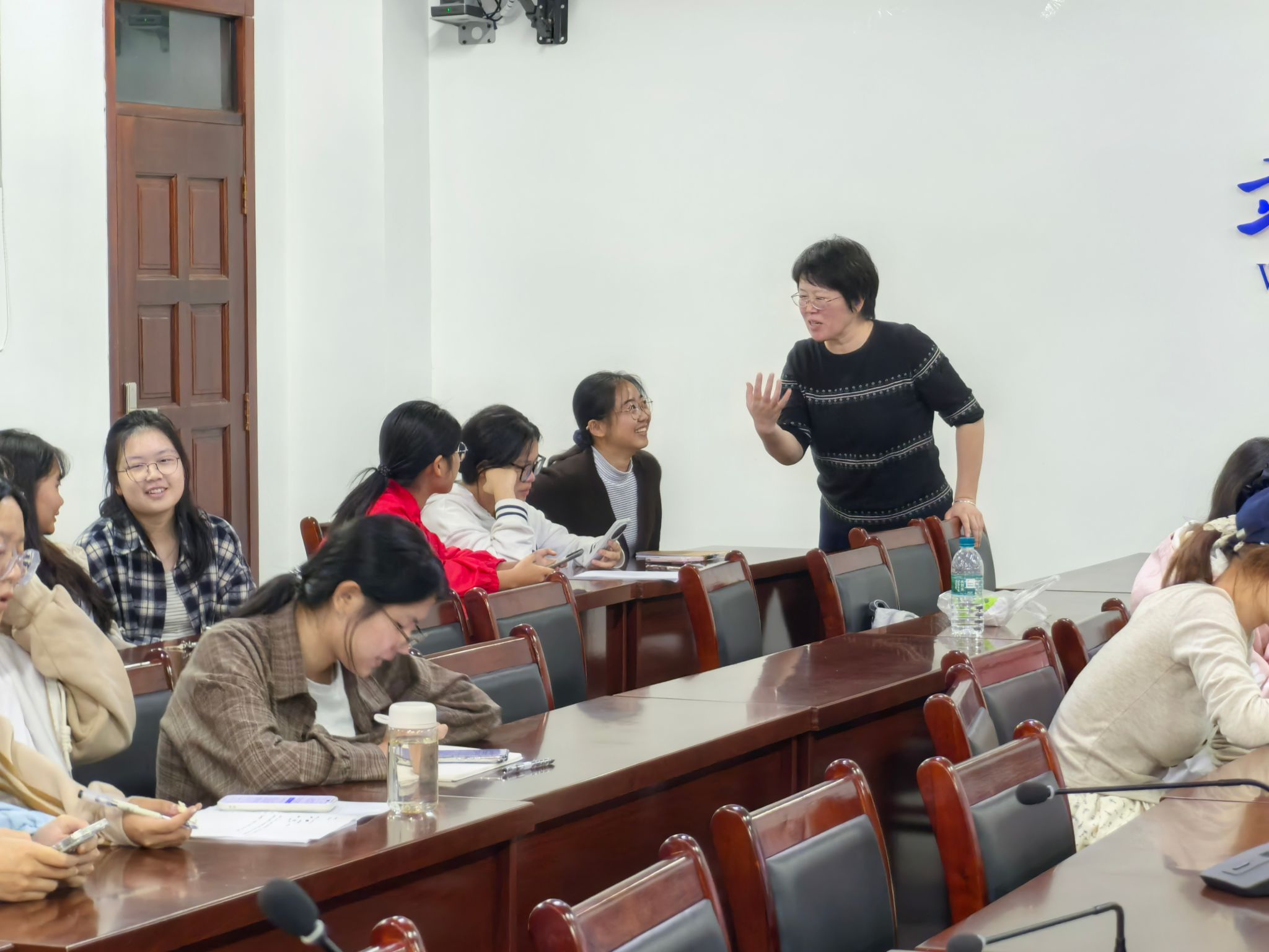 为帮助新生快速融入大学学术与文化生活,搭建跨学院交流平台,本次活动在主题与形式上进行了精心设计。现场布置温馨活泼,围绕“我的大学新生活”、“家乡与文化”、“兴趣与梦想”等贴近新生实际的话题展开自由讨论与小组互动。学院领导、专任教师及外教们分散融入各个交流圈,亲切引导对话,鼓励同学们勇敢表达,并适时提供语言点拨和文化背景分享,有效缓解了新生的紧张感,激发了其英语口语表达的兴趣与信心。