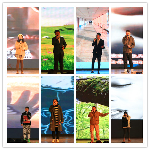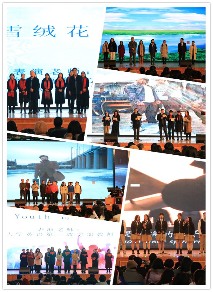 闭幕式期间,外国语学院各系部、研究生也带了非常精彩的表演。英语系的老师们首先带来了深情款款的诗歌朗诵“Dream”。随后,商务英语系的老师带来英文歌曲“No matter what”,大学英语第一教学部带来优美的诗朗诵“Youth”,第二教学部带来好听的“Edelweiss”、第三教学部献上金曲“five hundred miles”,MTI研究生们精彩演绎英文版《我和我的祖国》。