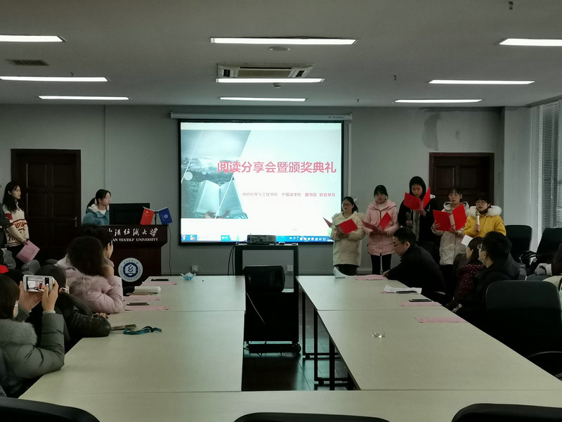 熊少平首先对读书活动进行了全面总结,倡议“让阅读成为纺大人的风尚,让我们一起努力,践行崇真尚美校训、积极追求真理。”谭燕保发表了“读书的幸福”的主题讲话,结合自己求学工作经历阐明“越是在物质丰富的年代,我们需要更多精神的贵族。越是在众声喧哗的时刻,我们越需要捕捉最动听的音符。在语言和表达被狂欢的情景下,唯行动者英雄。读书吧!”