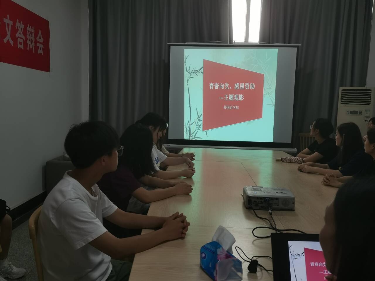 6月2日上午,外国语学院在崇文楼413会议室开展“青春向党,感恩资助”红色主题观影活动,活动由辅导员甘新敏老师主持,学院曾申请国家生源地助学贷款、获得国家奖、助学金的同学参加。