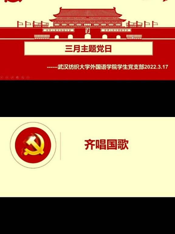 2022年3月17日,外国语学院学生党支部通过线上腾讯会议召开了主题党日活动。会上,全体党员齐唱国歌,重温入党誓词,交纳党费,并集中学习了习近平总书记在十九届中央纪委六次全会上发表的重要讲话精神和中国共产党第十九届中央纪律检查委员会第六次全体会议公报。