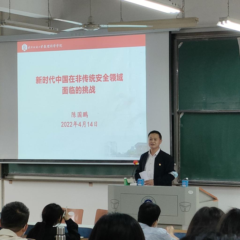正逢2022年全民国家安全日,作为新时代的青年更应该牢固树立国家安全意识,维护国家安全,为让大家充分来了解国家安全的内涵、了解维护国家安全的意义。4月14日下午在崇真楼219教室外国语学院开展第八十期入党积极分子培训第二讲,此次培训邀请了来自数理科学学院党委副书记陈国鹏为全体学员做主题为“新时代中国在非传统安全领域面临的问题”的课程。