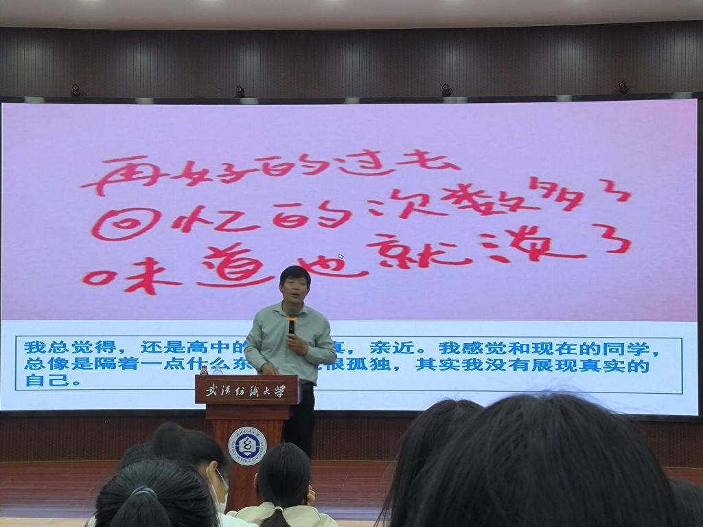 首先,赵老师利用苦恼这个话题切入今天的主讲内容,并进一步提到了大学生在大学时期与高中时期的反差以及自身的落寞感,他强调这些心理落差存在于我们的方方面面。例如成绩,人际关系,是否适应等,并进一步探究了心理落差的原因:一方面在于进入大学后具体和共同目标的缺失,产生了差异性,这使得大家产生隔阂;另一方面是恋爱,思乡,以及自身失利等造成的情绪问题,这些问题的表现为一种情绪的转移。赵老师强调我们会存在有焦虑的问题,但面对失败我们不能形而上学地去评判自身“不行”而是去积极寻找内部原因和外部原因。