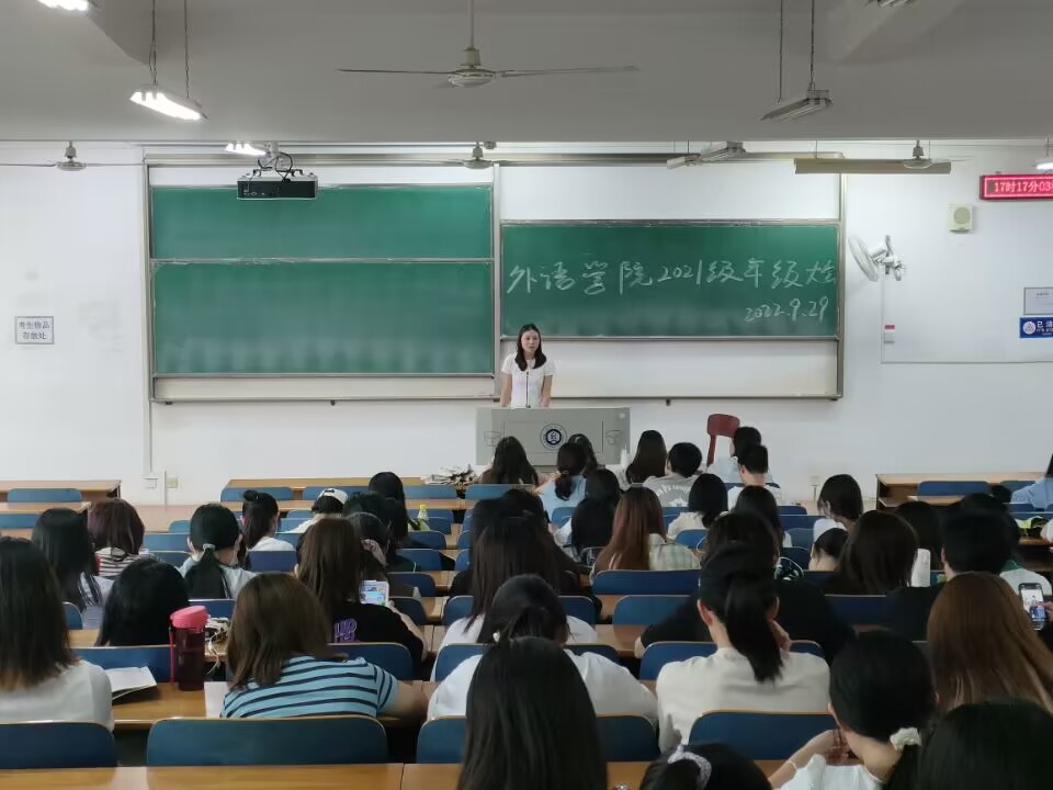 为了普及国家奖助学金政策,贯彻落实资助育人各项工作,更好地发挥资助育人功效,9月29号,外国语学院于崇文楼120教室召开国家奖助学金政策宣讲会,辅导员聂啸天、甘新敏分别给各个年级进行了经济困难等级认定、奖助学政策宣讲。