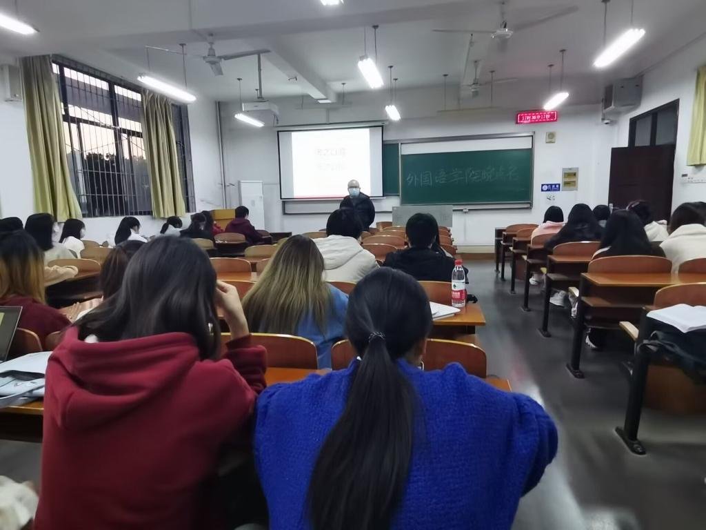 10月27日,为纪念抗美援朝72周年纪念,外国语学院举办抗美援朝纪念日专题讲座,团委学生会全体学生干部参与讲座。党委副书记彭阳慈航主讲。