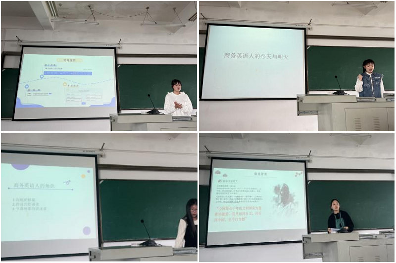 最后,两位大一的专业学生韩蝶和张思思分别以“一带一路,商务英语人的角色”和“文坛巨擘泰戈尔的中国之行”为题,从思政角度讲述了自己的专业角色以及未来的专业应用角色,充分展示了专业学生的人文素养与思辨精神。