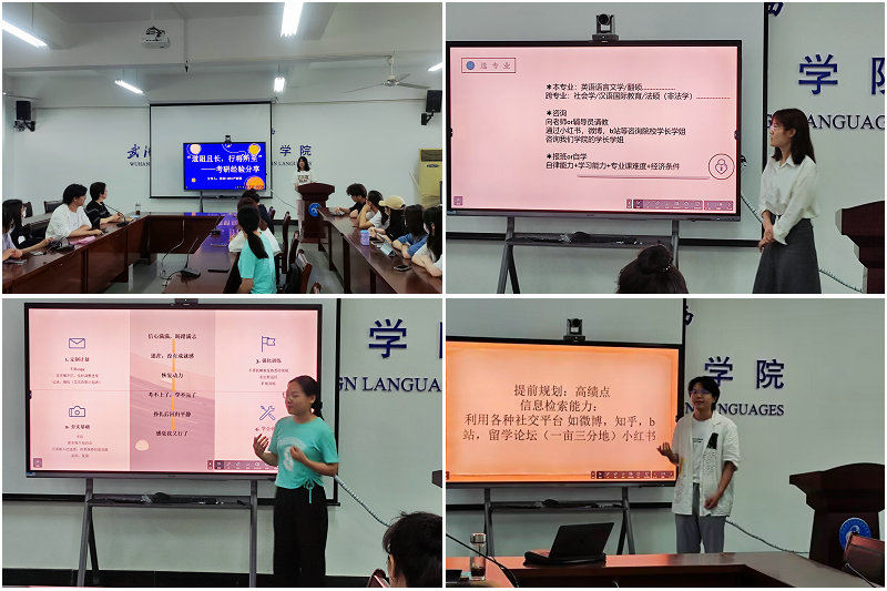 本次论坛的几位发言人均为英语系2023年成功考取硕士研究生或申请留学的优秀毕业生。严新雅同学成功考取复旦大学,郭冬梅同学成功考取中国石油大学,罗尚雨同学成功考取华中科技大学,黄兴同学成功申请伦敦国王学院,蔡文斌同学成功考取上海师范大学。