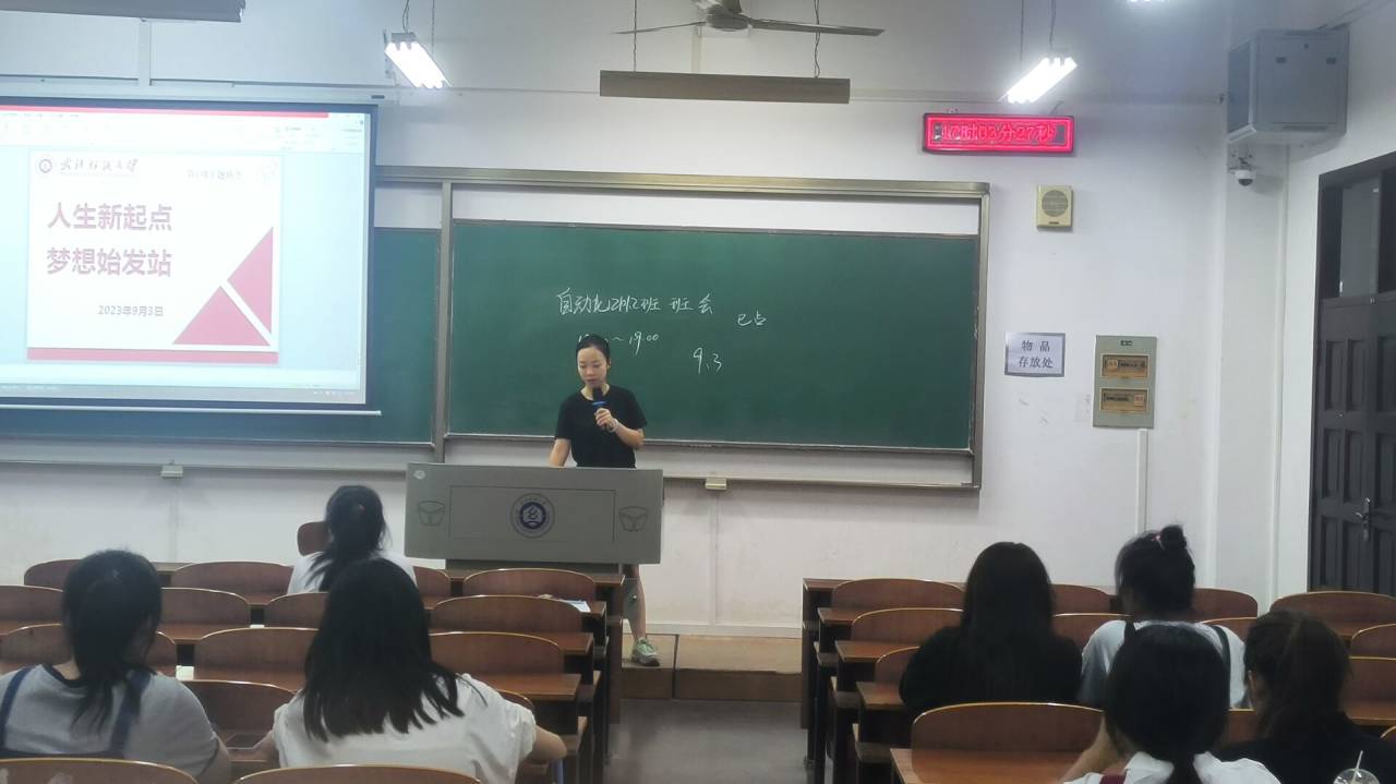 上课声响,喜迎学生到,安全记心间。班主任以注意人身安全防范,遵守宿舍管理规定,履行离校请假手续等方面讲述。其中,以最近高热度电影《孤注一掷》来告诫学生们警惕电信诈骗;还有多发的溺水事故也是反复与同学们提起。除此之外,班主任还贴心地送上一份心理调适小锦囊,让同学通过端正心态,调整生物钟,积极锻炼等方法更快地重新融入到大学生活,多关注自身与他人的心理健康度过一个快乐的学校生活。在学习方面,班主任也提到要导向型地学习,确认自己的近期目标:专四的规划,拓展第二专业,发展综合能力多参加比赛等,以及自己的长远规划:毕业之际是出国,考研还是工作等。