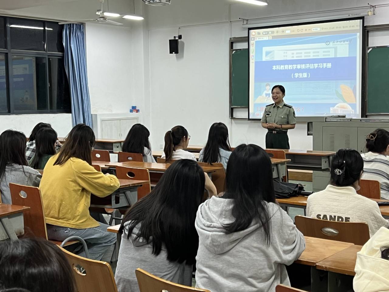 随后,针对学校本科教育教学审核评估,班主任召开“聚焦审核评估·争做迎评先锋”主题班会,引导同学们认真学习《审核评估学习手册》、审核评估知识要点,使同学们了解学校办学定位、办学特色、办学理念等常识和迎评过程中应该注意的关键点,树立“校荣我荣,参与评估,人人有责”的意识,以良好的风貌迎接学校本科教育教学审核评估。