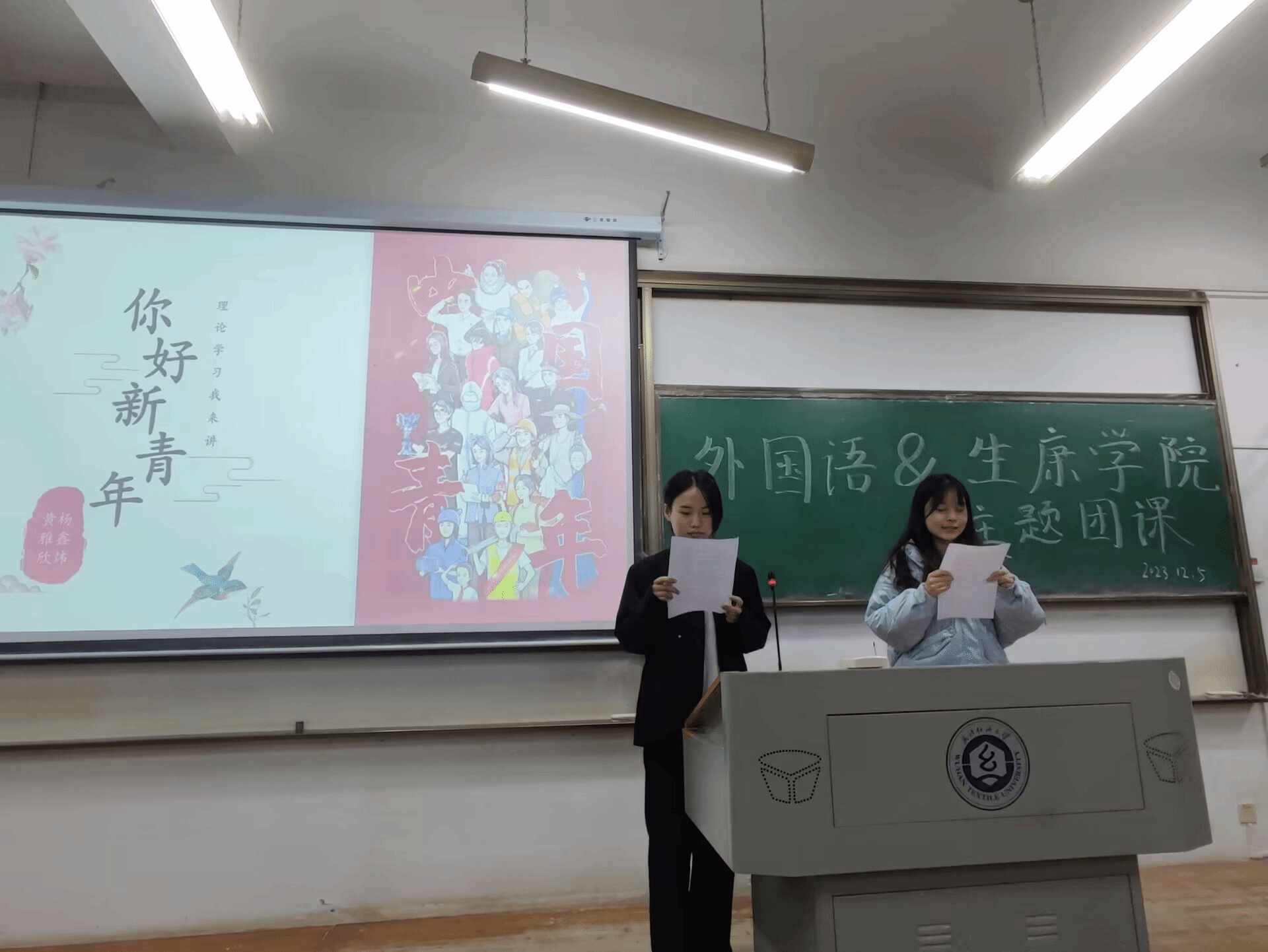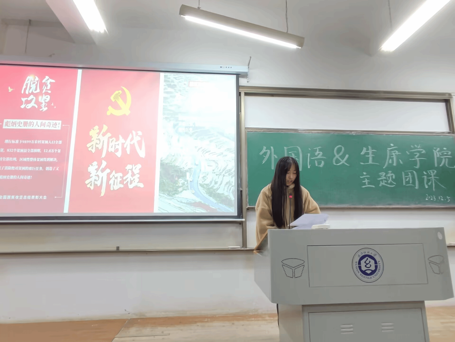 为积极落实习近平新时代中国特色社会主义思想进支部、进社团、进网络、进团课要求,外国语学院各团支部于12月5日晚开展了“百生讲坛”活动。 学院英语12202班杨鑫炜、黄雅欣、罗晶莹、商英12202班高雯玥作为“百生讲坛”优秀主讲人分享了自己的主题演讲故事。